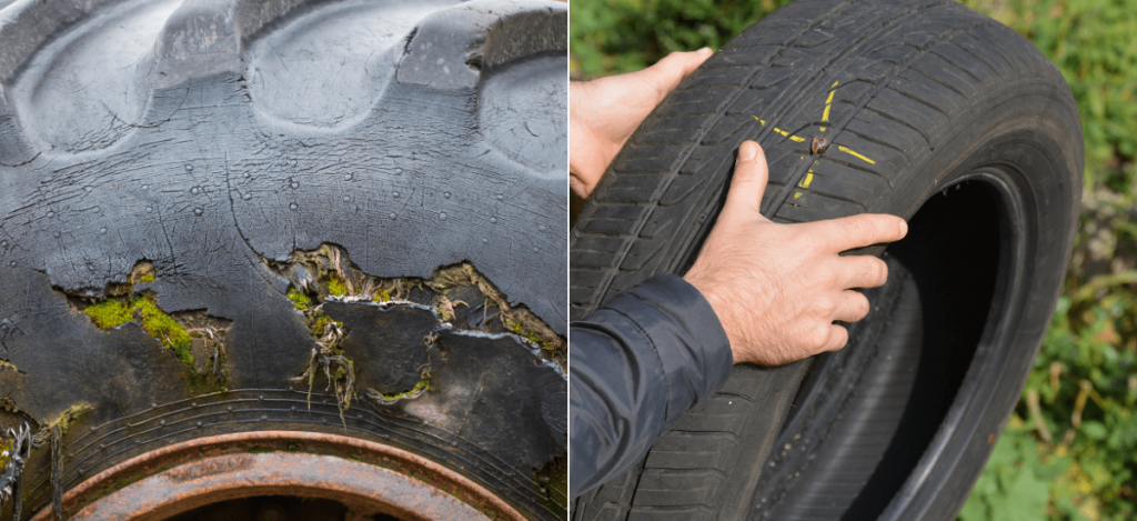 Lastly, inspect the sidewalls of the tires for bulges. Damaged sidewalls may lead to failure under normal driving conditions. Address any sidewall issues to ensure the continued safety of your tires.